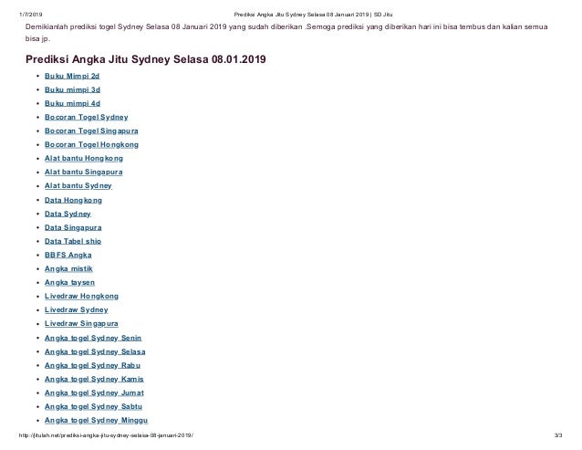 Prediksi angka jitu sydney selasa 08 januari 2019 sd jitu